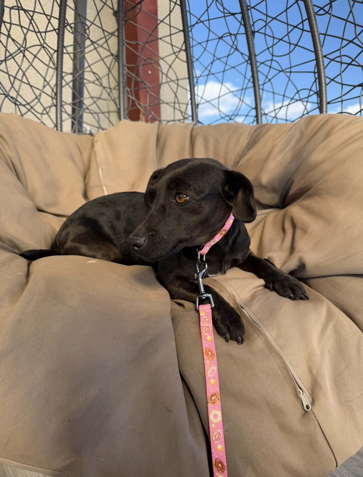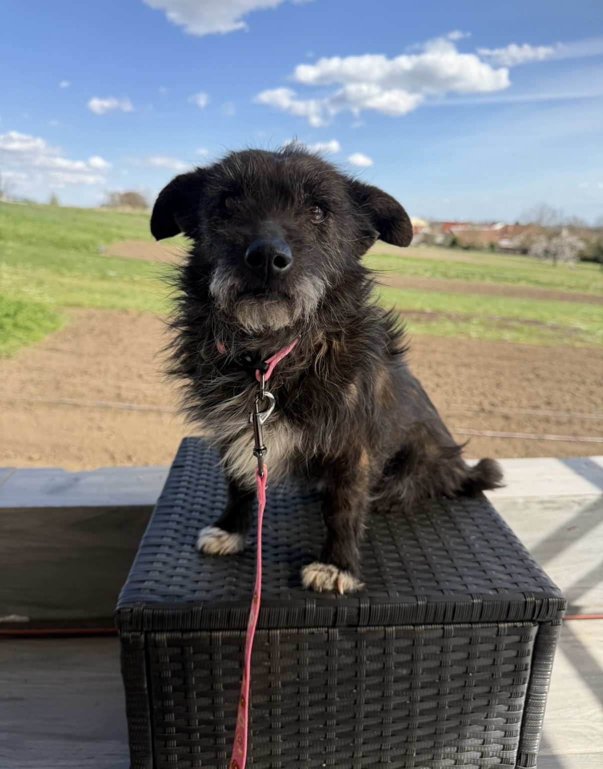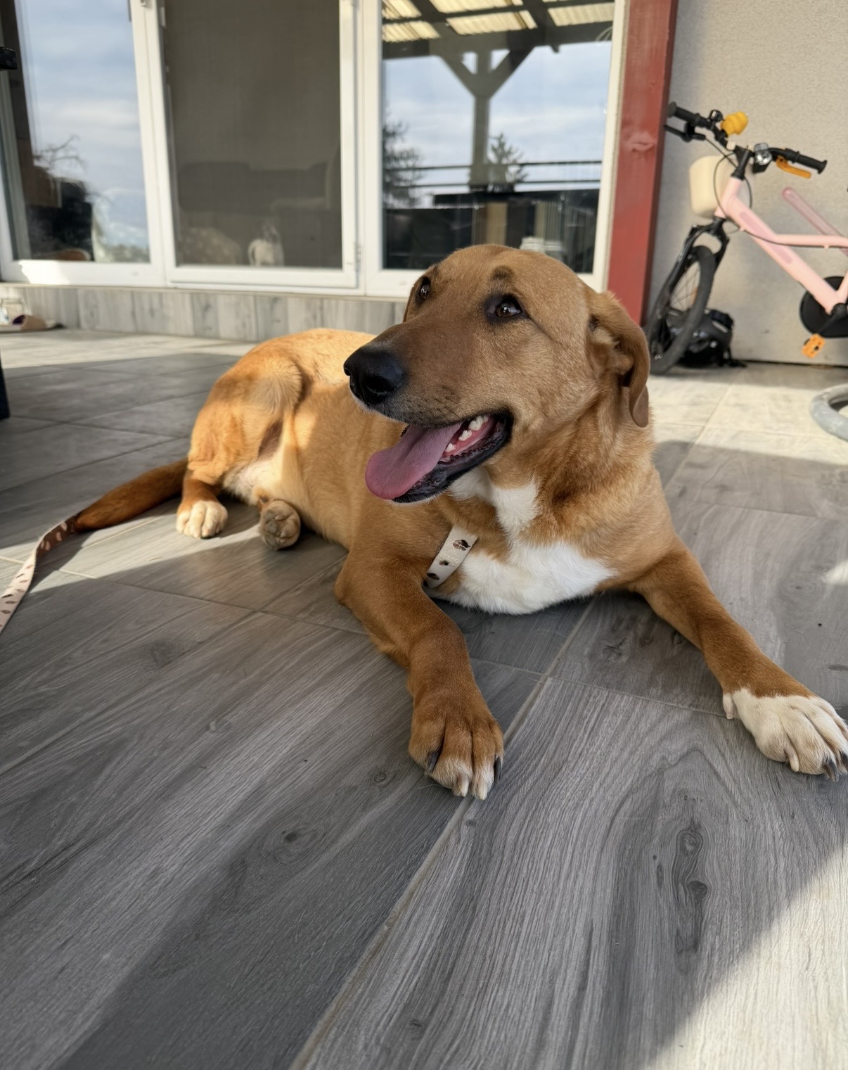 Sindy je přibližně 6letá, kastrovaná fenečka střední velikosti (cca 50 cm v kohoutku). Na první pohled působí klidně a vyrovnaně, a přesně taková také je – jemná, hodná a velmi příjemná společnice do pohody.